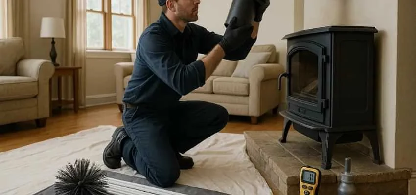 Poor draft causes smoke roll-out and sluggish startups. We evaluate connector angles, reduce unnecessary elbows, fix diameter mismatches, and make sure the cap is clear. After repairs, we perform an energy efficiency tune up to help the stove breathe better in Morningside Heights, Scarborough.